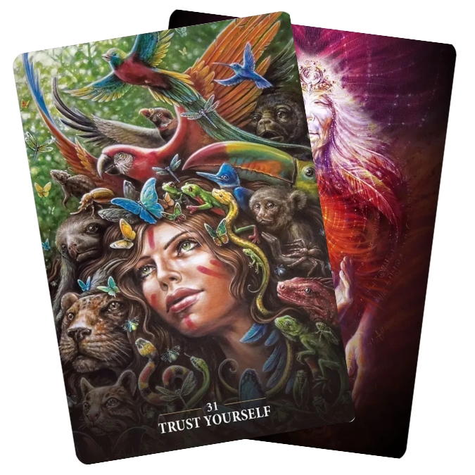 Texte von Alana Fairchild, bekannt für zugängliche Orakelkarten. Kunst von Autumn Skye Morrison, die realistische Porträts mit symbolischen Ebenen verbindet und so persönliche Wahrheit betont.