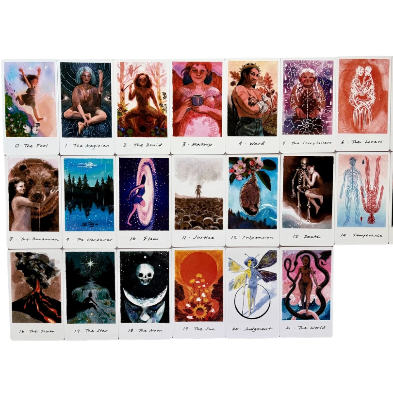 Stasia Burrington ist eine Illustratorin, die bereits Decks wie das Sasuraibito Tarot entworfen hat. Für dieses spezifische Deck schöpft sie aus ihrem eigenen Hintergrund und ihren Erfahrungen. Die Schöpferin beabsichtigt, dass dieses Deck als stärkendes Elixier und Begleiter für das Herz in unruhigen Zeiten dient.