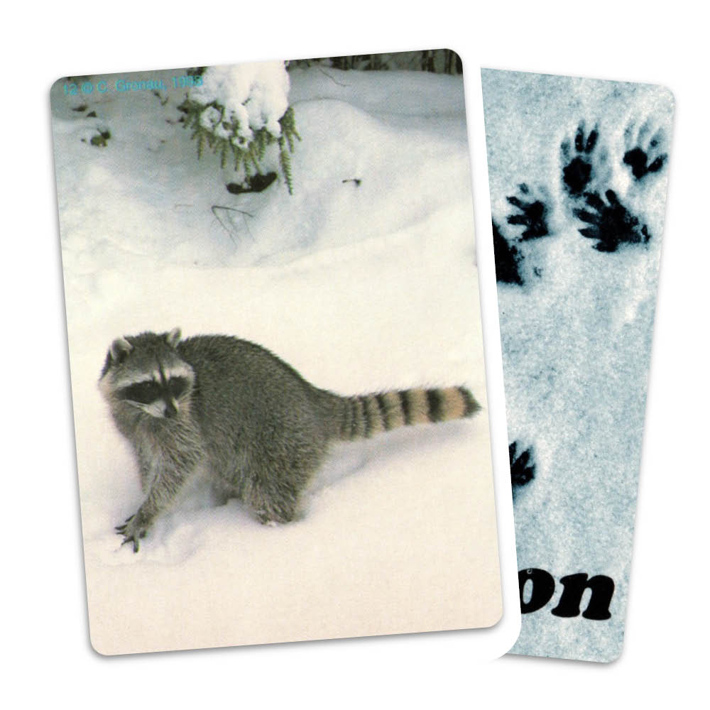 El juego de cartas de mapache consta de 55 tarjetas fotográficas atmosféricas que representan la vida diaria de los mapaches. Los curiosos e inteligentes "bandidos del bosque" fueron capturados por los amantes de la naturaleza Aileen Douglas y Christian Gronau, cerca de su remota cabaña en la costa del Pacífico de Canadá. Las cartas muestran al mapache en todo tipo de situaciones: jugando, explorando, descansando y comiendo, siempre con una mirada traviesa.
