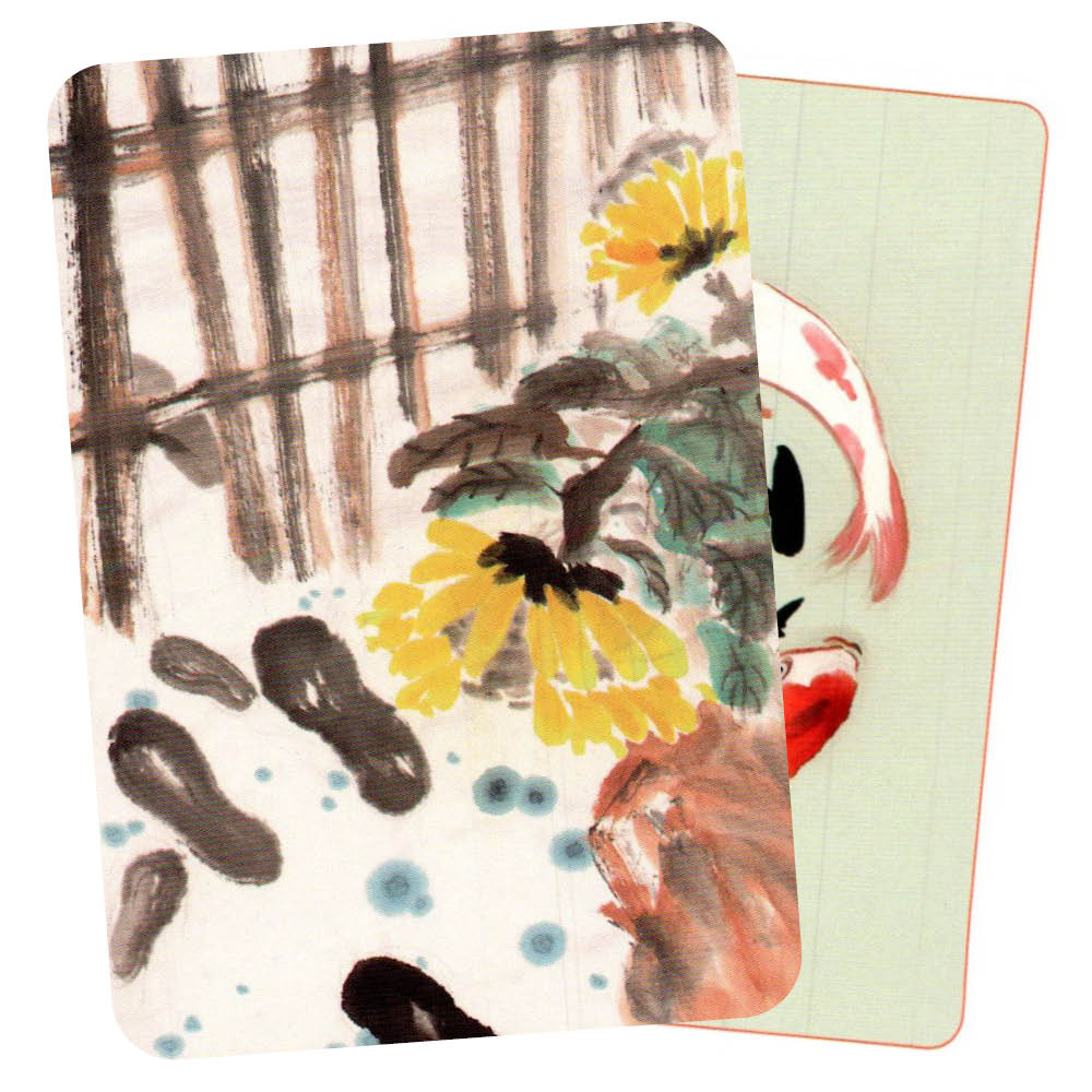 Las 55 tarjetas están impresas en papel resistente y acabadas con una capa mate. El tamaño de las cartas es de 89 x 129 mm y el peso total del juego es de 350 gramos. Se suministran en una lujosa caja de almacenamiento con instrucciones rápidas. El estilo de acuarela de Han Wei da a las cartas un aspecto poético y atemporal.