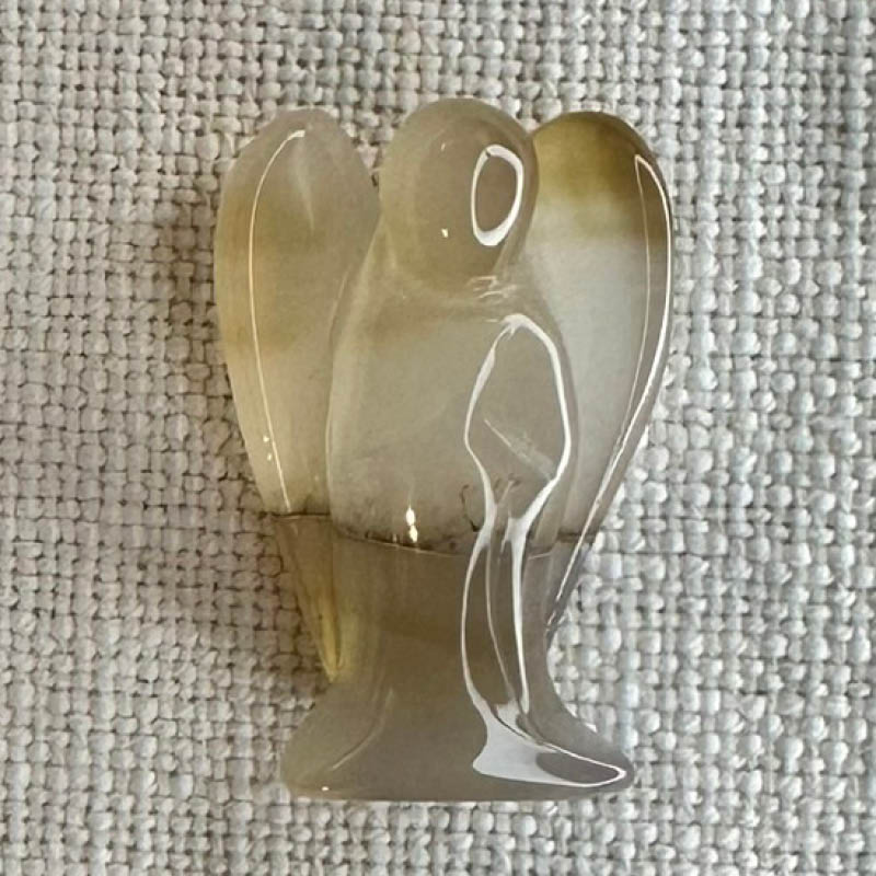 De Agaat engel is een klein, handgeslepen engeltje van natuurlijke steen. Zijn zachte, melkachtige glans en subtiele kleurschakeringen maken hem tot een geliefde kristallen engel voor wie harmonie en kalmte zoekt. Een stille metgezel tijdens tarot- of orakelleggingen, meditatie of gewoon als rustpunt op je nachtkastje.