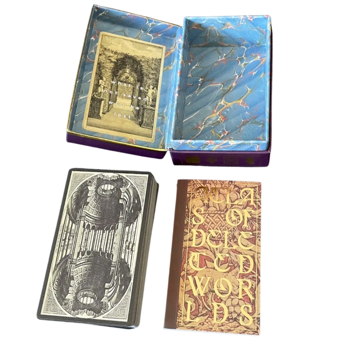 Deleted World Tarot van Joshu Urban Davis is een eerste editie 78-kaartendeck dat tarot opnieuw vormgeeft binnen een wereld van technologie, digitale ruïnes en vervaagde herinneringen. Het deck onderscheidt zich door volledig herwerkte Grote Arcana en vier unieke pakken die thema’s uit de informatietijdperk verweven met klassieke tarotsymboliek.