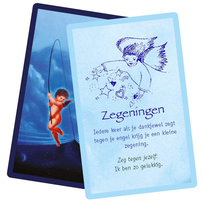 Dit zijn orakelkaarten met 33 engelenkaarten en 1 instructiekaart, in het Nederlands, uitgegeven door Koppenhol Uitgeverij.