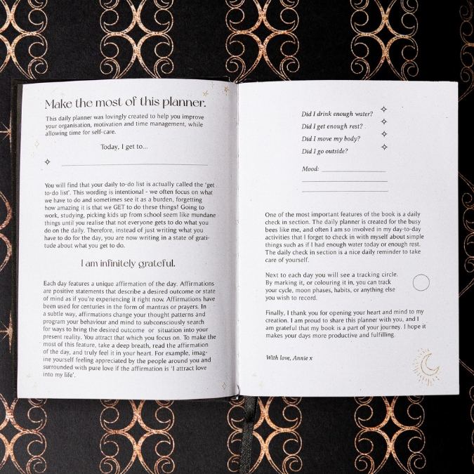 Rose 2026 Daily Planner – Dreamy Moons - dagelijkse agenda voor focus en zelfzorg