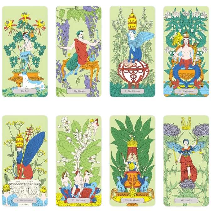 Maria Eva Di Maggio heeft hij een deck gecreëerd waarin de archetypen van de Grote Arcana nieuw leven worden ingeblazen door middel van bloemmotieven. Deze combinatie van botanische kunst en tarot creëert een visueel aantrekkelijk en symbolisch rijk deck.